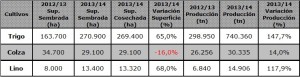 El siguiente cuadro compara los datos estadísticos finales de trigo, colza y lino de las dos últimas campañas agrícolas en Entre Ríos.