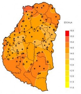 El valor promedio podría sufrir variaciones debido a que dentro del 10% que aun resta ser cosechado se detectan lotes que en el momento de la floración se vieron afectados por el aumento de la nubosidad, la caída en la radiación solar y quedaron expuestos a bajas marcas termicas.