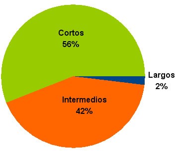 La mayor proporción está conformada por ciclos cortos con el 56% y el 42% restante está constituida por ciclo intermedios, abarcando desde intermedios largos a intermedios cortos. Ver Gráfico No 2.