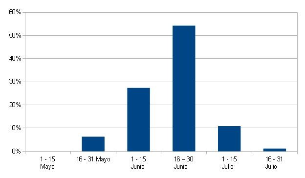 A continuación se puede observar en el Gráfico N°1 el calendario de siembra por quincena.