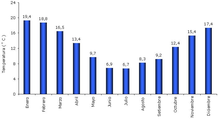Sin embargo, este año se presentó con marcas térmicas más elevadas ubicándose el promedio de la temperatura mínima en 7,9 ºC, lo cual muestra un desvío positivo de 1,2 ºC con respecto a la media histórica. Esta misma tendencia se registró en los valores de las marcas medias y máximas.
