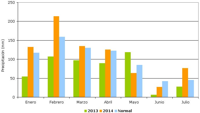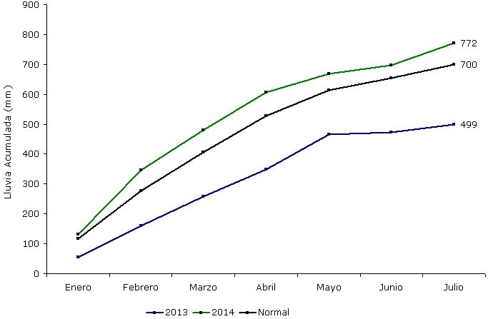 Al 31 de julio se detecta una diferencia positiva de 72 mm en relación al valor esperado (772 mm versus 700 mm).