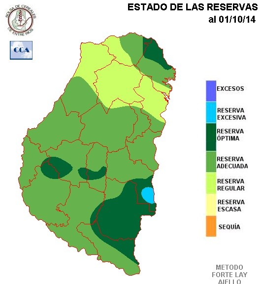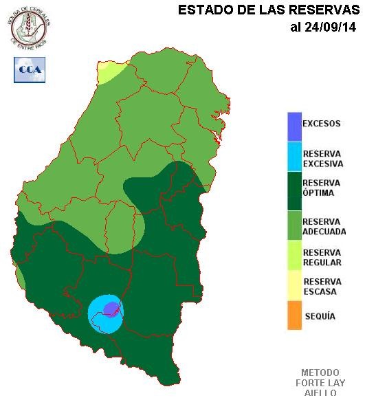 Las reservas de humedad se mantienen en niveles más que satisfactorios para el desarrollo de los cultivos implantados y para el avance de las siembras. La única zona que presenta cierto margen de vulnerabilidad a los excesos hídricos se ubica en el sudeste provincial.
