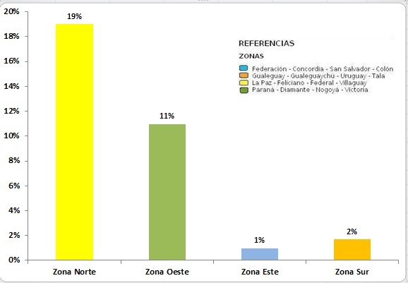 Como se puede observar en el Mapa Nº 2 la zona que mayor avance presentó es la sur.