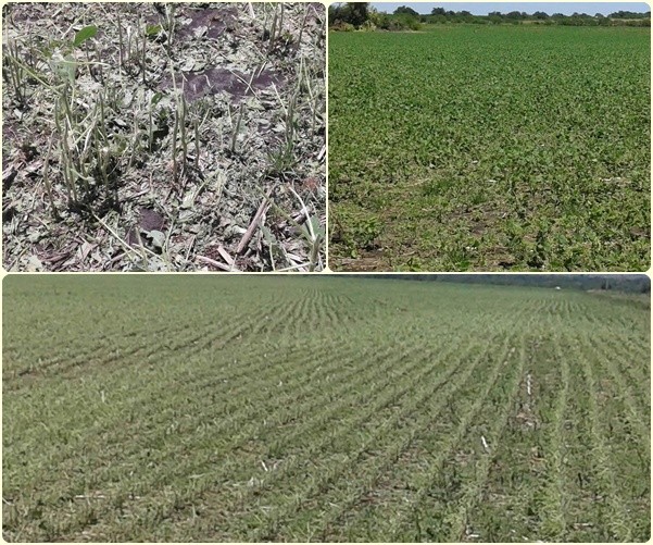 Hasta el momento la superficie afectada es escasa, reportándose daños en soja que van desde 5% al 10%; no obstante cabe aclarar que hubo pérdidas total en algunos casos, (ver Fotografía).