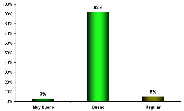 Se estima que el 92% del área posee una condición calificada como buena (expectativas de rendimiento dentro los parámetros normales), existiendo tan solo 3% calificada como muy buena (expectativas de rendimiento por encima de los valores habituales) y 5% en situación regular (expectativas de rendimiento por debajo de lo normal), ver Gráfico Nº 1.