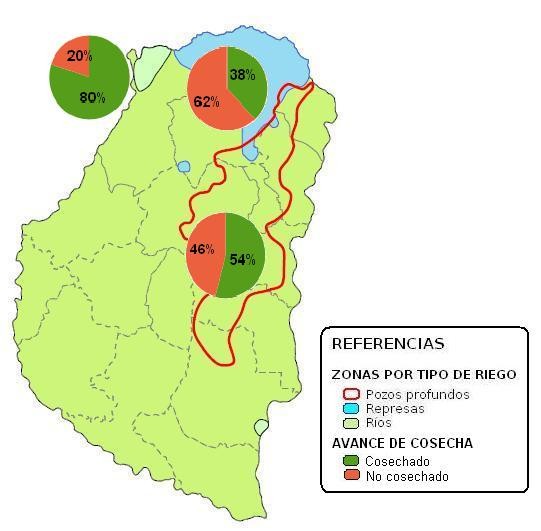 Los avances de cada zona según el tipo de riego se muestran el en Mapa Nº 1.