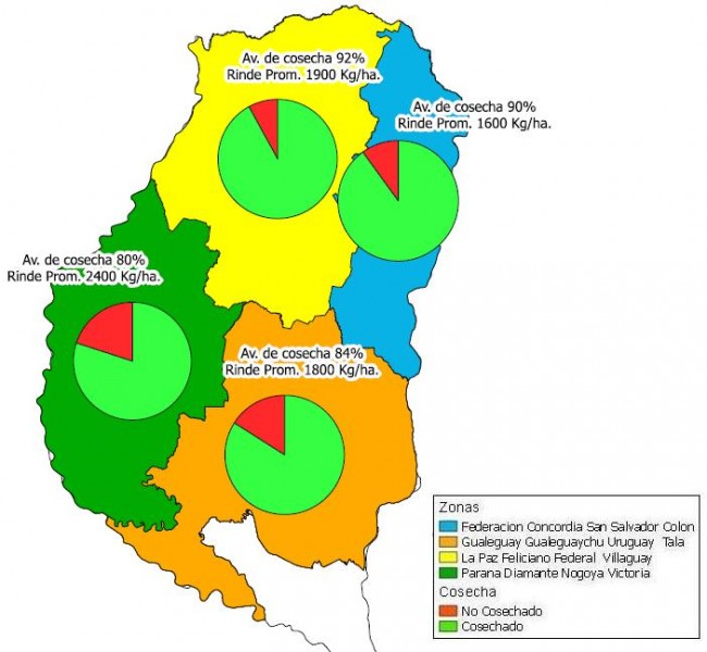 En el Mapa Nº 1 se muestra el grado de avance en cada zona y el rinde promedio logrado.
