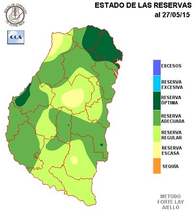 Sobre el noreste de la provincia las reservas se mantienen en niveles óptimos gracias a precipitaciones que no han superado los 20 milímetros. Es decir la demanda no es muy elevada. Para recuperar un nivel adecuado u óptimo de reserva en el centro de la provincia no hacen falta milimetrajes sobreabundantes, sin embargo la oferta de agua en el corto plazo no propone una mejora apropiada para este sector de ER.