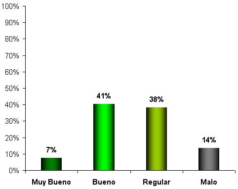 En base a consultas efectuadas a la Red de Colaboradores se determinó que el 48% del área posee una condición evaluada entre buena y muy buena; mientras que el 52% restante fue caracterizado entre una situación de regular a mala, ver Gráfico Nº 1.