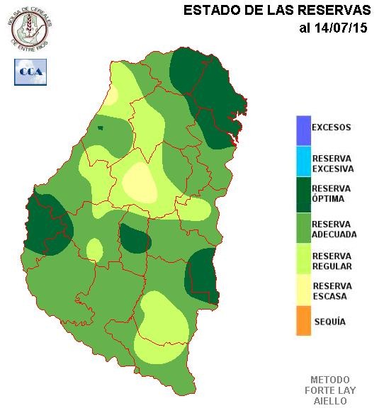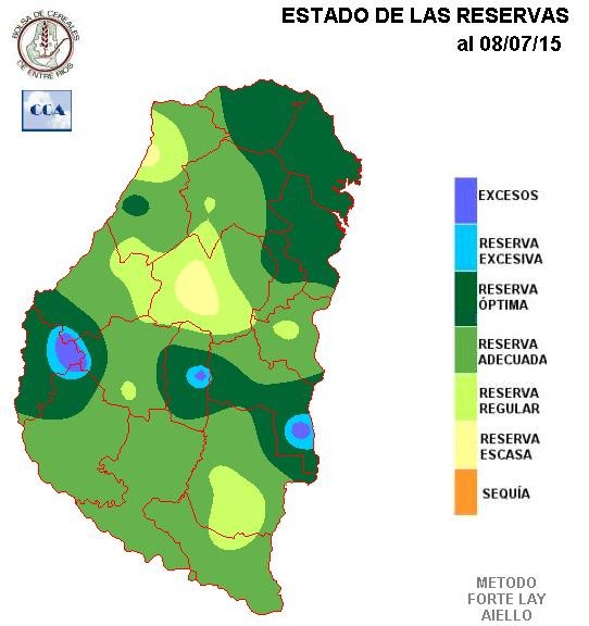 Las reservas de humedad se mantienen favorables en las zonas que presentan mayor grado de actividad agrícola. Por otra parte el centro de la provincia se afianza como el sector más seco.