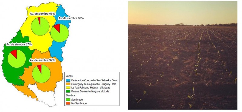 Al cierre del informe semanal la siembra de maíz de primera sólo pudo sumar un 5% con respecto a la semana pasada, alcanzando así un progreso del 90% del área total estimada para la presente campaña. Cabe recordar que se proyecta una superficie que podría oscilar entre 115.000 ha y 130.000 ha.