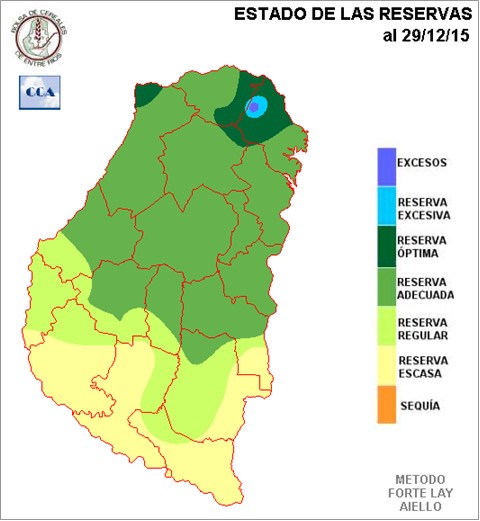 El escenario que plantea el mapa es el más riesgoso, posiblemente en cada zona deba hilarse más fino acerca de cuál es la posibilidad de que las reservas se agoten en el transcurso de la próxima semana. Las altas temperaturas y la falta de lluvia puestas sobre el balance hídrico que se presenta en el mapa, no hace más que anticiparnos el habitual período seco de los veranos. La evolución la iremos viendo con el transcurso de los próximos días y la posibilidad que vayan mostrando los pronósticos de una última semana de enero con una oferta de agua mejorada.