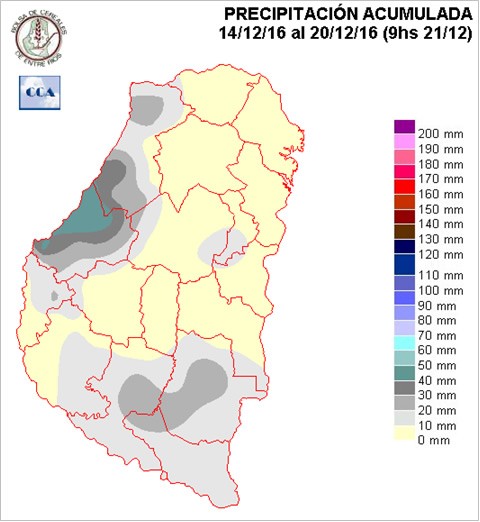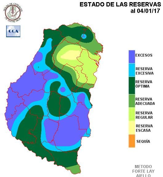 A partir de la segunda quincena de diciembre, y a la espera del «fenómeno Niña» crecía la preocupación en el sector debido a que las reservas hídricas de la provincia se encontraban en retroceso. Sin embargo los últimos 10 días del mes de diciembre y primeros del mes en transcurso cerraron con excesos hídricos en la mayor parte del territorio provincial.