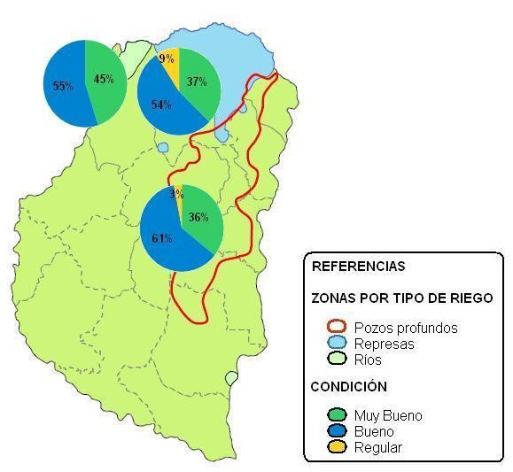 La condición general del cereal a nivel provincial se resume del siguiente modo: situación muy buena 37%, buena 58% y regular 5%. En el mapa Nº 1 se detalla la condición del cultivo por zonas.