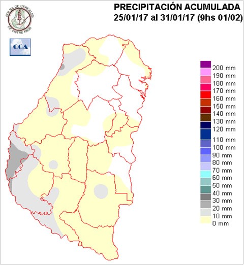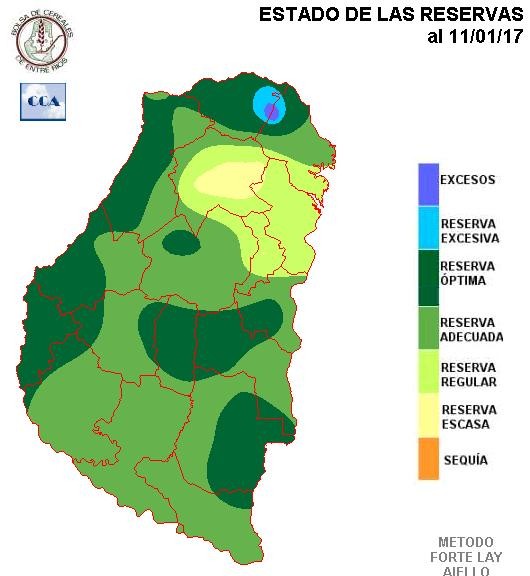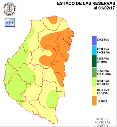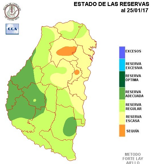 Las reservas de humedad se han resentido con el magro derrotero pluvial de la segunda quincena de enero. Los departamentos del sudoeste parecen presentar un abalance hídrico que se sostiene en mejores condiciones a pesar del retroceso de las precipitaciones. El panorama se ajusta hasta niveles de sequía sobre el noreste de la provincia. En este sentido las próximas lluvias ganan un oportunismo que bien puede considerase sustantivo para el desarrollo de lo que resta de la campaña.