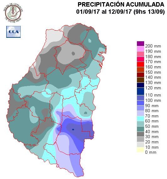 El mes de septiembre cerró con claros desvíos positivos de las precipitaciones. Solo el extremo norte de La Paz recibió una oferta restringida, casi descontextualizada del comportamiento que predominó a gran escala.