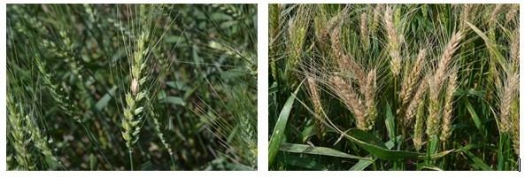 Las enfermedades, con severidades altas en variedades susceptibles, debido a las condiciones climáticas altamente conductivas, en general fueron controladas con el uso de fungicidas mezcla en uno o dos momentos, En algunos casos se han realizado aplicaciones de triazoles para el control de la fusariosis de la espiga (Fusarium graminearum y Fusarium spp.). De todas maneras, se observan lotes con diversos niveles de incidencia y severidad (Foto N°1).