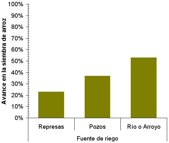 La siembra de arroz en la provincia alcanzó un avance del 34 % sobre el área total y presenta un gran retraso si se lo compara con otras campañas, donde el mismo superaba el 50 % a la misma fecha.