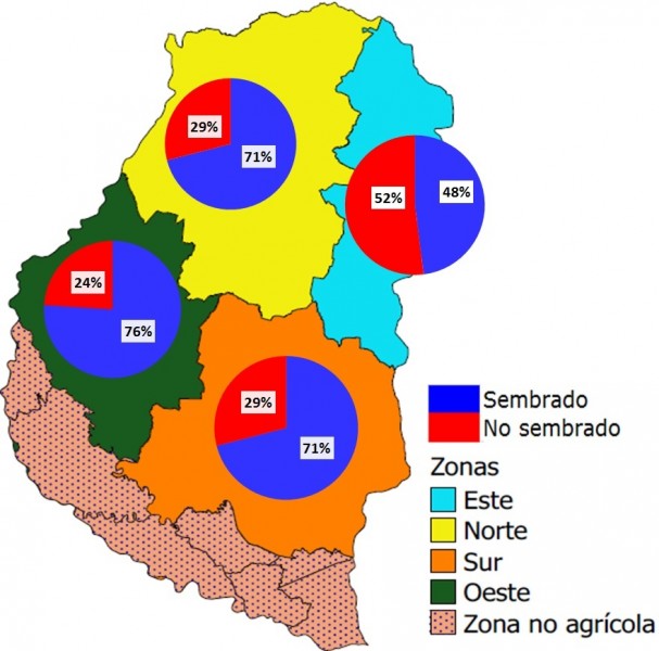En la Figura 9 se puede apreciar el avance en la siembra de soja de segunda por zona.