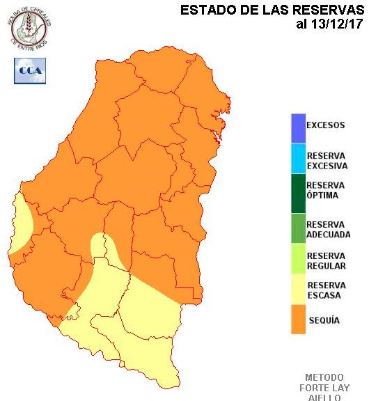 Las lluvias del fin de semana no han sido de un volumen suficiente, sin embargo han bastado para definir un status quo en el patrón de reservas de humedad. La sequía queda restringida al norte de la provincia y se proyecta con fuerza a territorio correntino, que al sumar al norte de SF y a gran parte del NEA definen una vasta región que padece restricciones críticas en la disponibilidad hídrica. En muchos sectores, esta restricción ya califica como sequía.