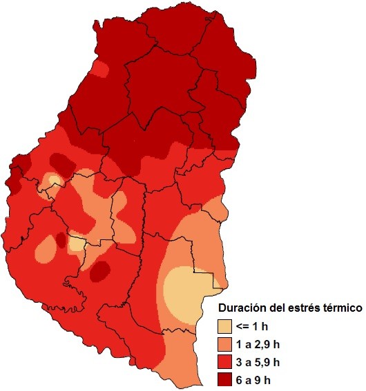 La Figura 2 muestra la duración del estrés contabilizado en horas para el día más caluroso de la segunda quincena de diciembre.