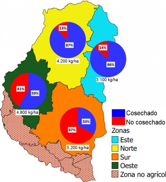 En la Figura 1 se puede apreciar el grado de avance por zona y el rendimiento promedio obtenido.