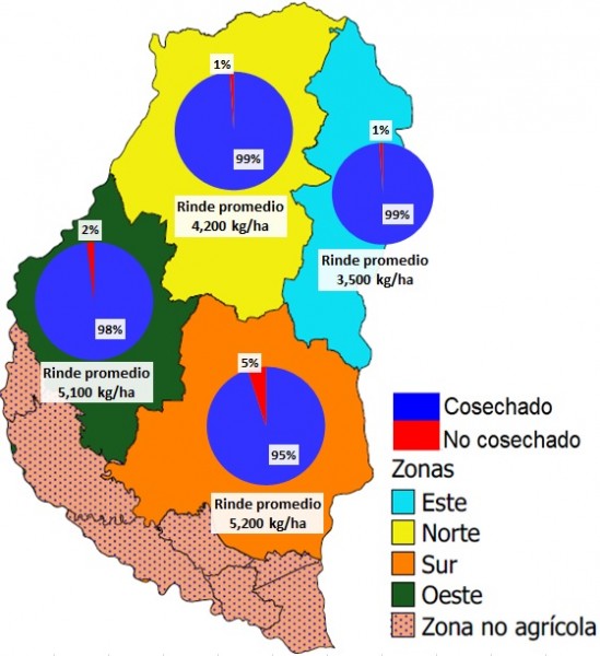 El rinde promedio actual se ubica por debajo del valor del último quinquenio que es de 4.400 kg/ha.