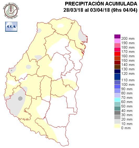 Como puede apreciarse en el mapa, la oferta de agua ha sido muy pobre y en muchos departamentos nula. Es decir el escenario que predominó en el primer trimestre del año, se mantiene en estos primeros días de abril.