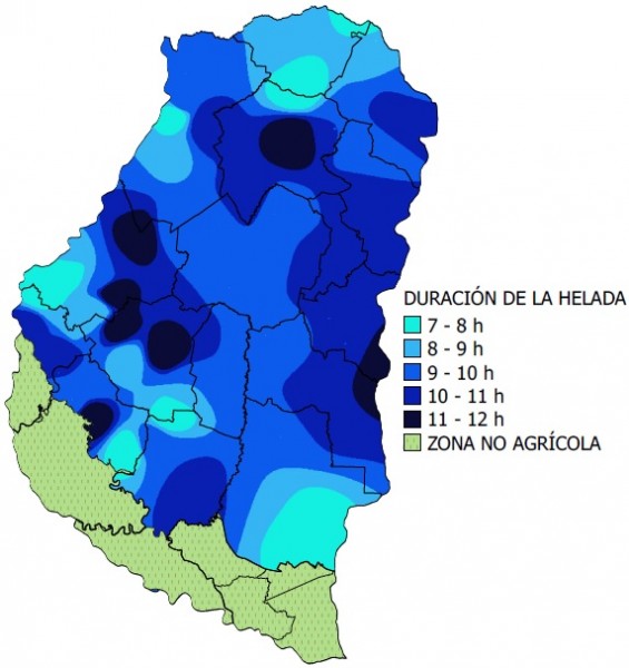 En la mayor parte del territorio la helada agronómica tuvo una duración que osciló entre 9 a 10 horas.