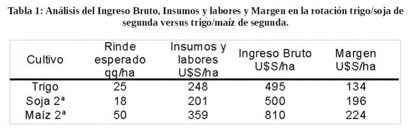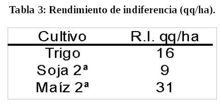Para tomar la decisión, posiblemente, la primera herramienta de ayuda sea el análisis del Margen Bruto (MB) en dólares calculado en base al rendimiento esperado, donde también se tienen en cuenta los gastos de insumos y labores (costos directos) y el ingreso bruto (ver Tabla 1).