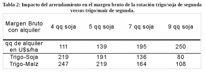 La combinación trigo/maíz de segunda arroja 28 U$S/ha más que la combinación trigo/soja de segunda (siempre teniendo en cuenta que es sin costo de arrendamiento).