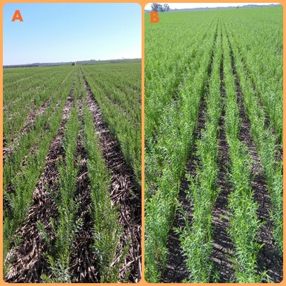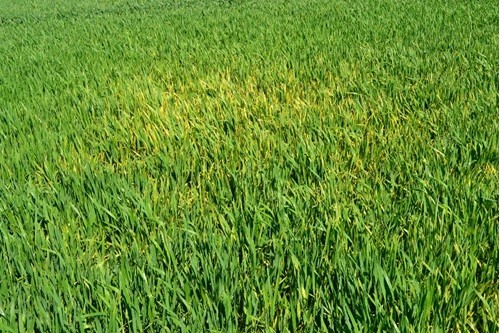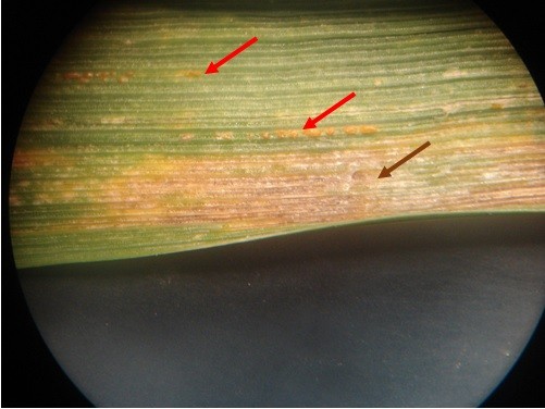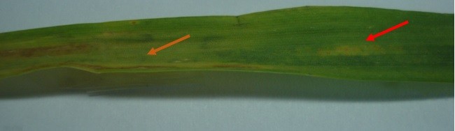Las variedades susceptibles a roya estriada o amarilla presentan grandes sectores, manchones o rodales de fácil visibilidad (Figura 1). En algunos lotes se detecta roya anaranjada (Puccinia triticina) y mancha amarilla (Drechslera tritici-repentis).