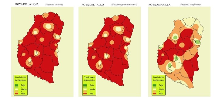 La finalidad de los mapas de riesgo es promover el monitoreo de cada lote en particular, ya que las enfermedades pueden variar según la región, las variedades sembradas, las fechas de siembra, el ambiente, el nivel de fertilización, la rotación o secuencia de cultivos, etc.