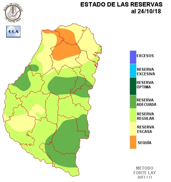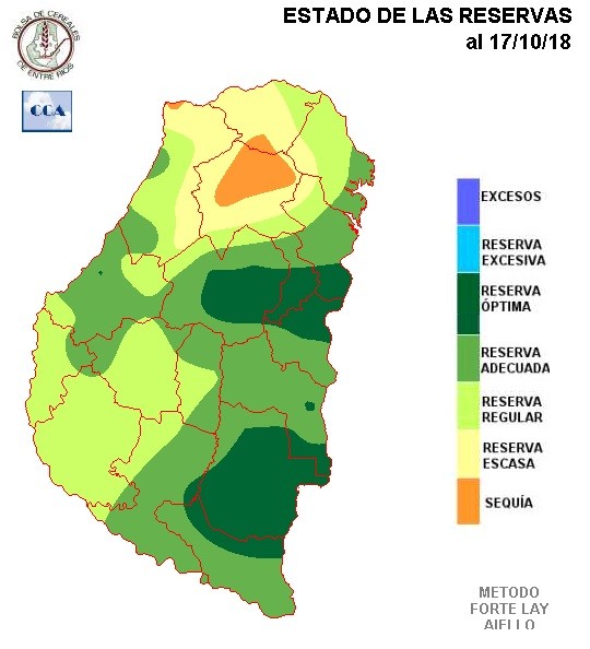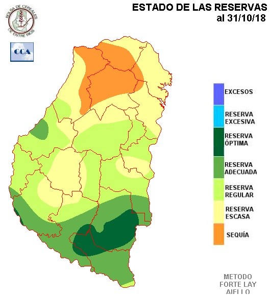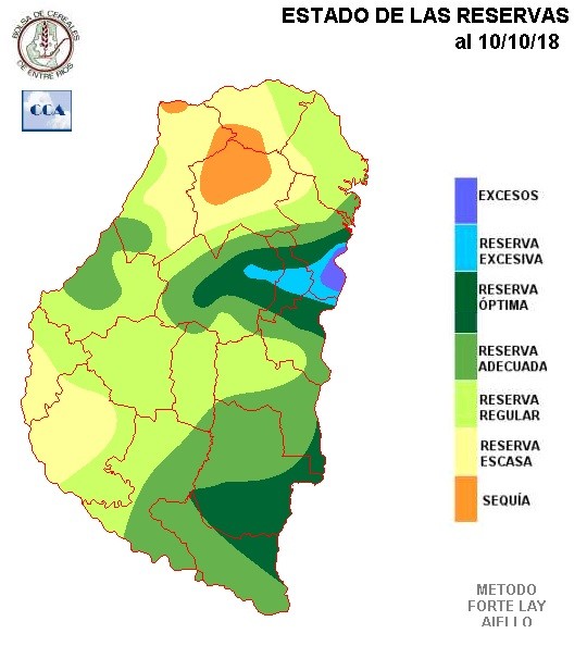 De acuerdo a lo descripto sobre el comportamiento de las lluvias, no llama la atención que la sequía este encontrando zonas del norte donde afianzarse. Este comportamiento puede estar impactando sobre áreas de interés arrocero. En general el patrón de humedad mejora hacia el sur, pero es difícil encontrar una zona donde pueda considerarse que las reservas suficientes. Casi toda la provincia, salvo las zonas más linderas al delta, presenta demandas pluviales, lo cual es perfectamente lógico con un octubre de lluvias tan pobres.