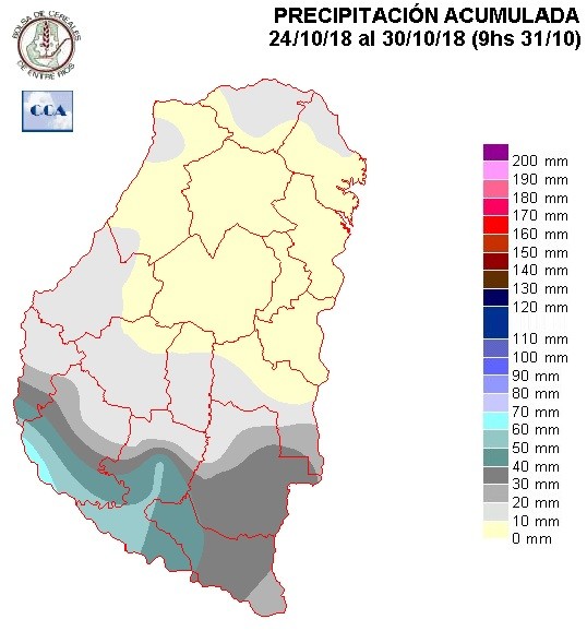 El mes de octubre cerró con lluvias por debajo de los valores normales. En gran parte del territorio un cincuenta por ciento menos, hacia la zona central del norte de la provincia el déficit fue mucho más drástico, con registros que apenas alcanzaron el diez o veinte por ciento del total esperado.