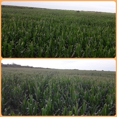 El estado general del cultivo de maíz en Entre Ríos continúa en óptimas condiciones. En base a consultas efectuadas a los colaboradores se determinó que el 51 % del área presenta una condición evaluada como muy buena, el 46 % bueno y solamente el 3 % en una situación calificada de regular. Este último caso incluye lotes afectados por las heladas y sitios donde los controles de malezas no fueron satisfactorios.