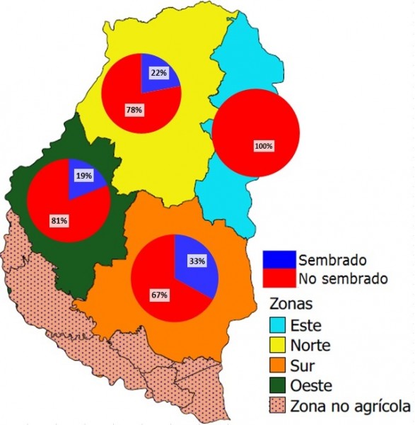 Es importante destacar que si bien el mes de noviembre es la fecha óptima para la implantación de la oleaginosa, las labores están condicionadas por la falta de lluvias, principalmente en la zona este donde no se ha iniciado la siembra por la falta de humedad. Figura 5.