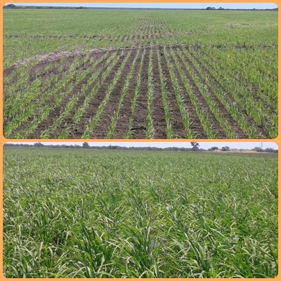 La condición general del cultivo es muy buena y se encuentra desde dos hojas a pleno macollaje, Figura 2.