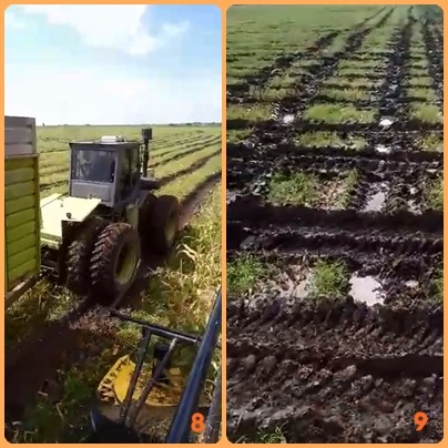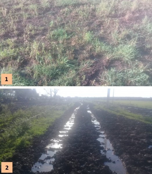 Otro serio inconveniente es que actualmente los suelos se encuentran saturados de agua en el perfil, por lo tanto se generan gran cantidad de huellas por el paso de la maquinaria (ver Figuras 8 y 9).