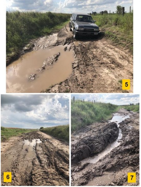 En las Figuras 5, 6 y 7 se puede observar el deterioro que presenta uno de tantos caminos rurales al día lunes 28 de enero ubicado a 4 km de la localidad de Hernández (distrito Hinojal).