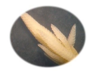 También, debido a la alta humedad ambiental los uredios de roya se hallan parasitados (Fig. 4) por picnidios que son cuerpos esféricos negro brillante (Fig. 5) del hongo hiperparásito Sphaerellopsis spp. Además, se registraron las primeras larvas de Mycodiplosis spp. (Diptera), que se alimentan de urediniosporas.