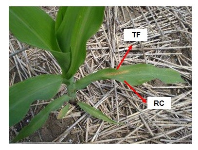 Los cultivos de maíz tardío o de segunda observados se encuentran entre V6 y V8, estadios donde se diferencia la panoja (Fig. 1) y presentan desde el punto de vista de las enfermedades foliares, un estado general bueno.
