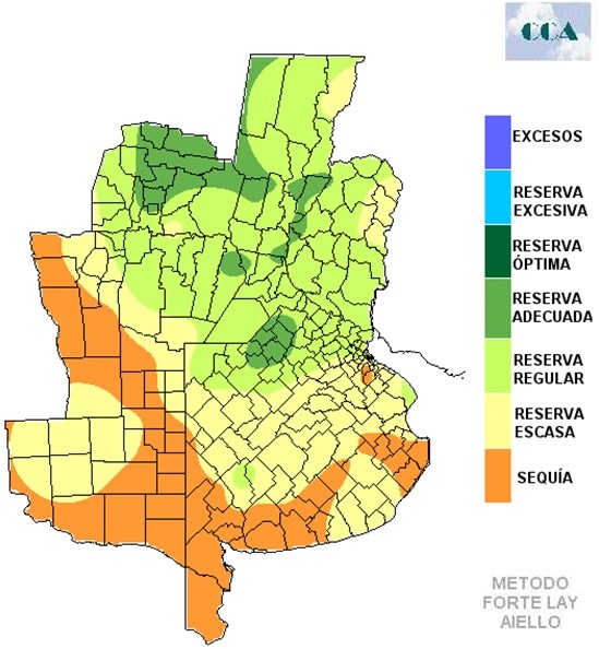A esta altura es conveniente recordar que este mapa se realiza considerando una pastura como cobertura. En este sentido debemos decir que el mismo puede ser representativo para la soja, pero el maíz entrerriano ha sobrellevado su período crítico con mucha holgura y esto debería traducirse en rindes superadores de los valores normales. En cuanto a la soja, es obvio decir que conforme ha transcurrido el mes de febrero, las reservas se han ido ajustando, sin embargo entendemos que el cultivo no está en una situación crítica y que tiene buenas chances de salir airosa de su período de floración.