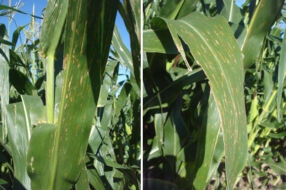 Los cultivos de maíz sembrados de segunda o fecha tardía observados esta semana se encuentran entre VT y R4 (Figura 1). Se observan numerosas enfermedades, pero de todas ellas sólo tiene relevancia epidémica y económica el tizón foliar en híbridos susceptibles. Cuando las hojas están muy afectadas, ocurre una fuerte removilización a partir de los tallos y se favorece la podredumbre de raíces y tallo por patógenos, y el vuelco de las plantas.