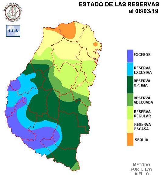 Como mencionáramos anteriormente, salvo el norte provincial, el resto del territorio está en condiciones de mantener un buen nivel de reservas aún con lluvias modestas. Algunas zonas rápidamente traducen las lluvias en excesos debido a la recurrencia de las precipitaciones, por el contrario otras ya muestran una tendencia hacia la sequía. Este contraste se presenta bien definido entre áreas del sudeste y sectores del noroeste provincial.
