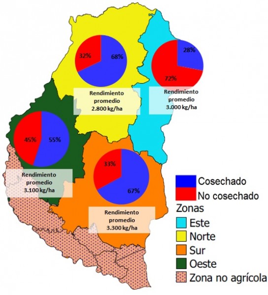 En la Figura 1 se muestra el avance de cosecha por zona y los rendimientos promedios alcanzados.