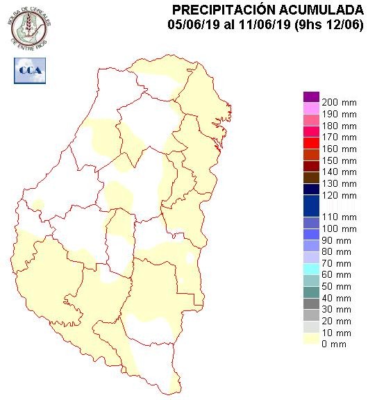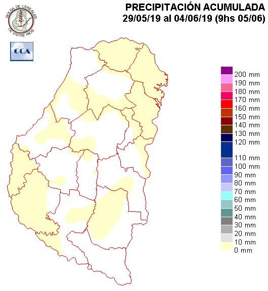 La semana ha transcurrido dejando algunas precipitaciones menores sobre todo durante la jornada del lunes pasado, antes de que se observara la intensa circulación del sur, que finalmente barrió la masa de aire húmedo que se venía reciclando no solamente sobre ER, sino que sobre gran parte del este del país. En el mapa se presentan precipitaciones que en general apenas han logrado sumar un par de milímetros, en algunos casos puntuales hasta cinco milímetros, aunque también muchas zonas solo presentaron coberturas nubosas bajas con fenómenos de condensación pero sin precipitaciones.