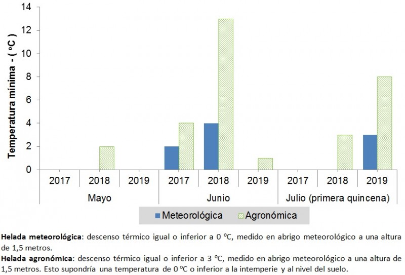 La primera quincena de julio del 2019 superó el número de heladas meteorológicas y agronómicas que el año 2017 si se analiza el periodo 01/mayo al 15/julio.