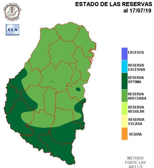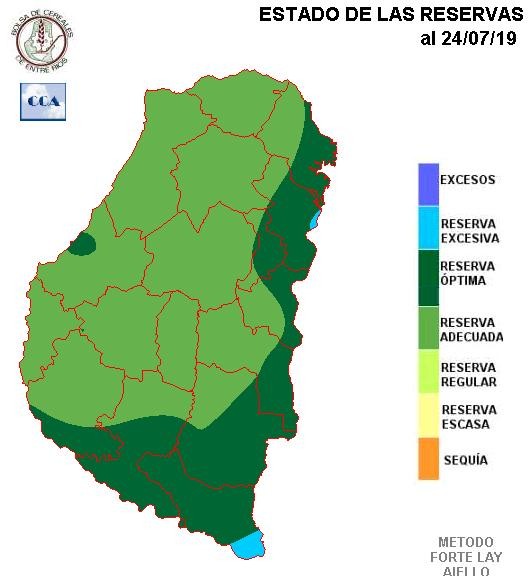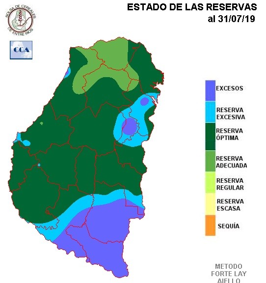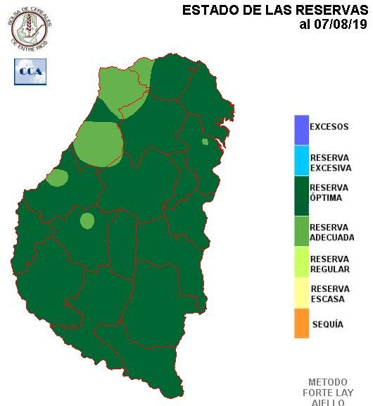 Tomando este mapa como condición inicial para una proyección hacia el mes de septiembre, el panorama es auspicioso. Como decíamos, están llegando algunas lluvias, lo cual fortalecerá el nivel óptimo de reservas y prácticamente define el abastecimiento de agua para el mes de agosto. Es poco probable que no vuelva a llover durante el resto del mes, aun cuando nos encaminamos a un período estable luego de las precipitaciones de las próximas horas. Bajo estas circunstancias el mes de septiembre arrancará con una demanda accesible de ser satisfecha.